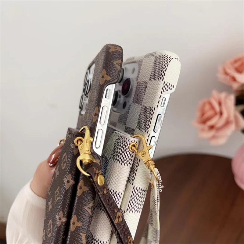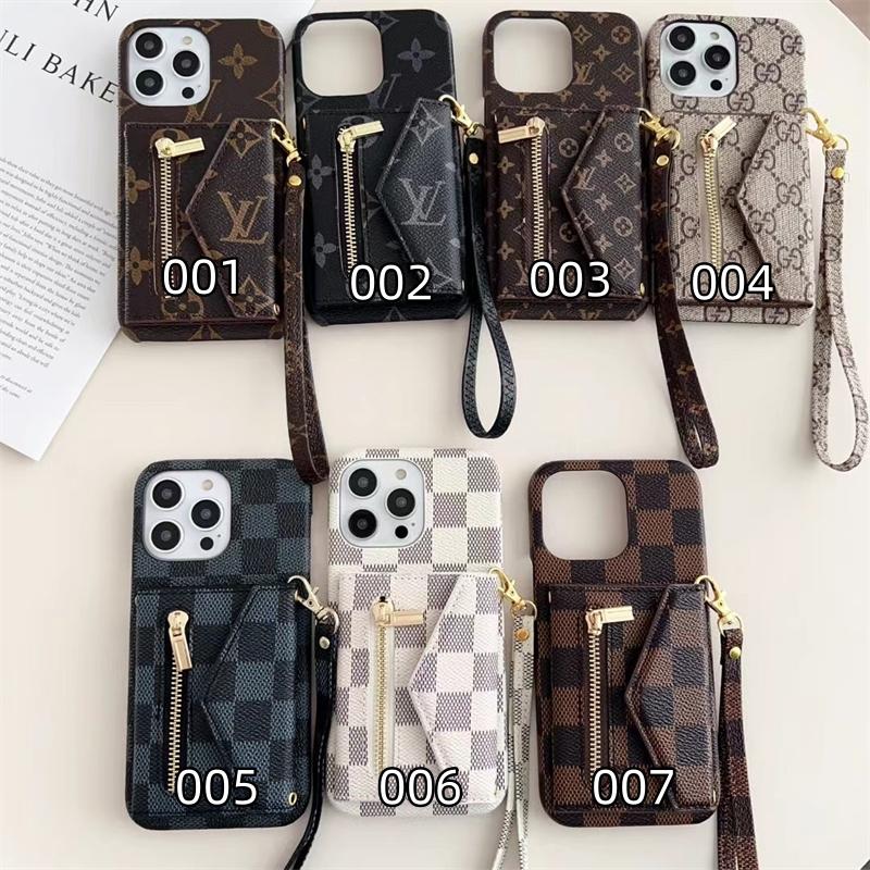 ヴィトン風 iPhone ケース ストラップ 付き カード 収納個