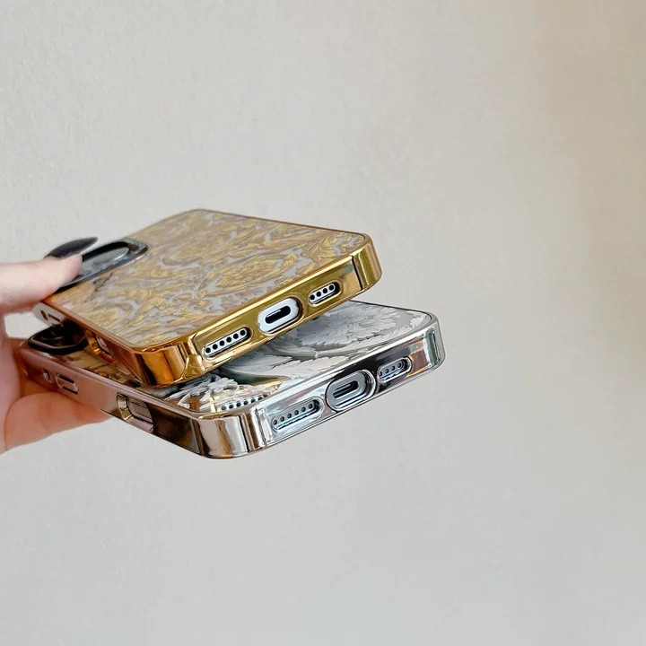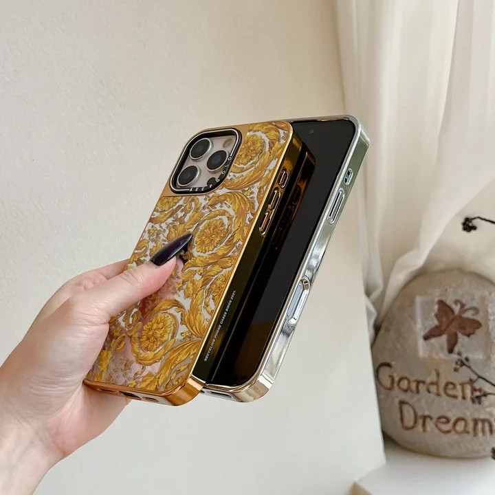 ヴェルサーチのiPhoneケースは、バロッコ柄が特徴です。