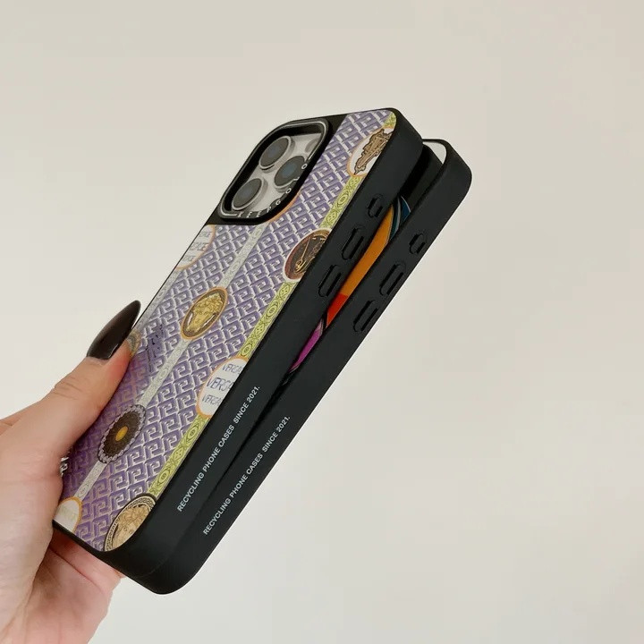ヴェルサーチのiPhoneケースは、鏡面仕上げが施されています。
