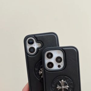 クロムハーツ iPhone ケース PUレザー ブラック 耐衝撃 ストリートスタイル