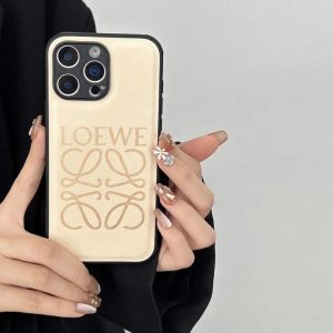 ロエベ iPhone ケース レザー 型押し アナグラム 耐衝撃 一体型 レンズ保護 おしゃれ
