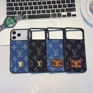 ルイ?ヴィトン iPhone ケース デニム柄 メタルロゴ ゴールド色 シンプル おしゃれ