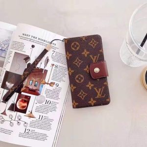 ルイヴィトン iPhone ケース 手帳型 モノグラム レザー 財布型 スタンド機能 ストラップ付き