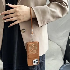 ロエベ iPhone ケース 本革 牛革 スマホショルダー 長いストラップ付き カード収納 高級感 MagSafe対応