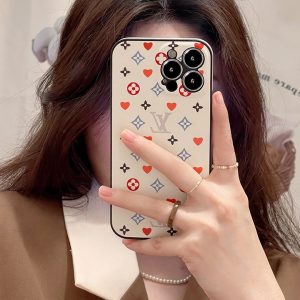ルイヴィトン iPhone ケース PUレザー ハート柄 花 全面保護 耐衝撃