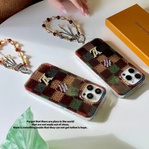 ルイヴィトン iPhone ケース ダミエチェック柄 グリッターデザイン ストラップ付き おしゃれ